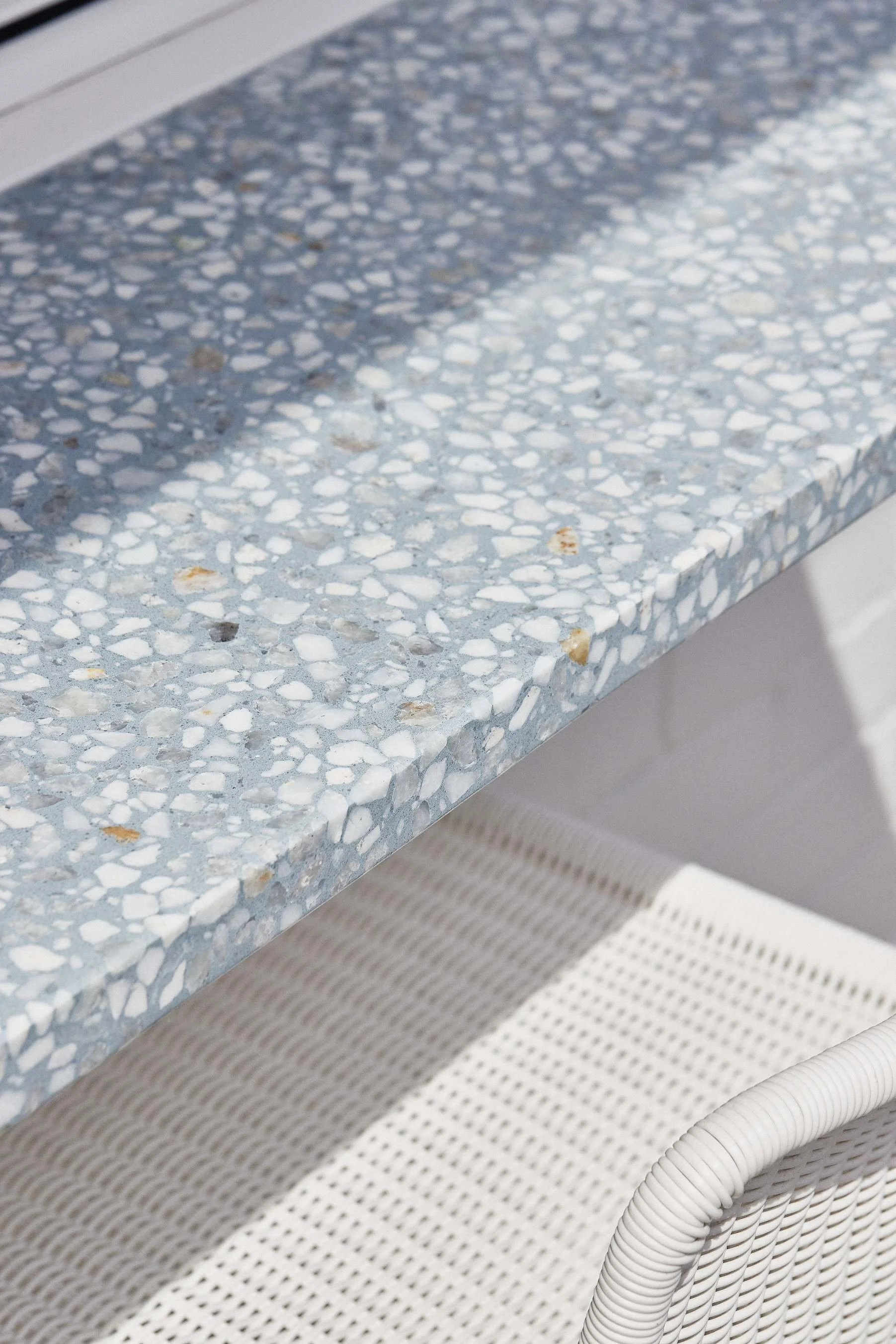 To support indoor–outdoor living, a custom 1800 × 400mm terrazzo slab was fabricated and installed as a wall-hung servery, seamlessly connecting interior spaces to the exterior entertaining area. The matching terrazzo finish ensures visual consistency while delivering durability and functionality for everyday use.