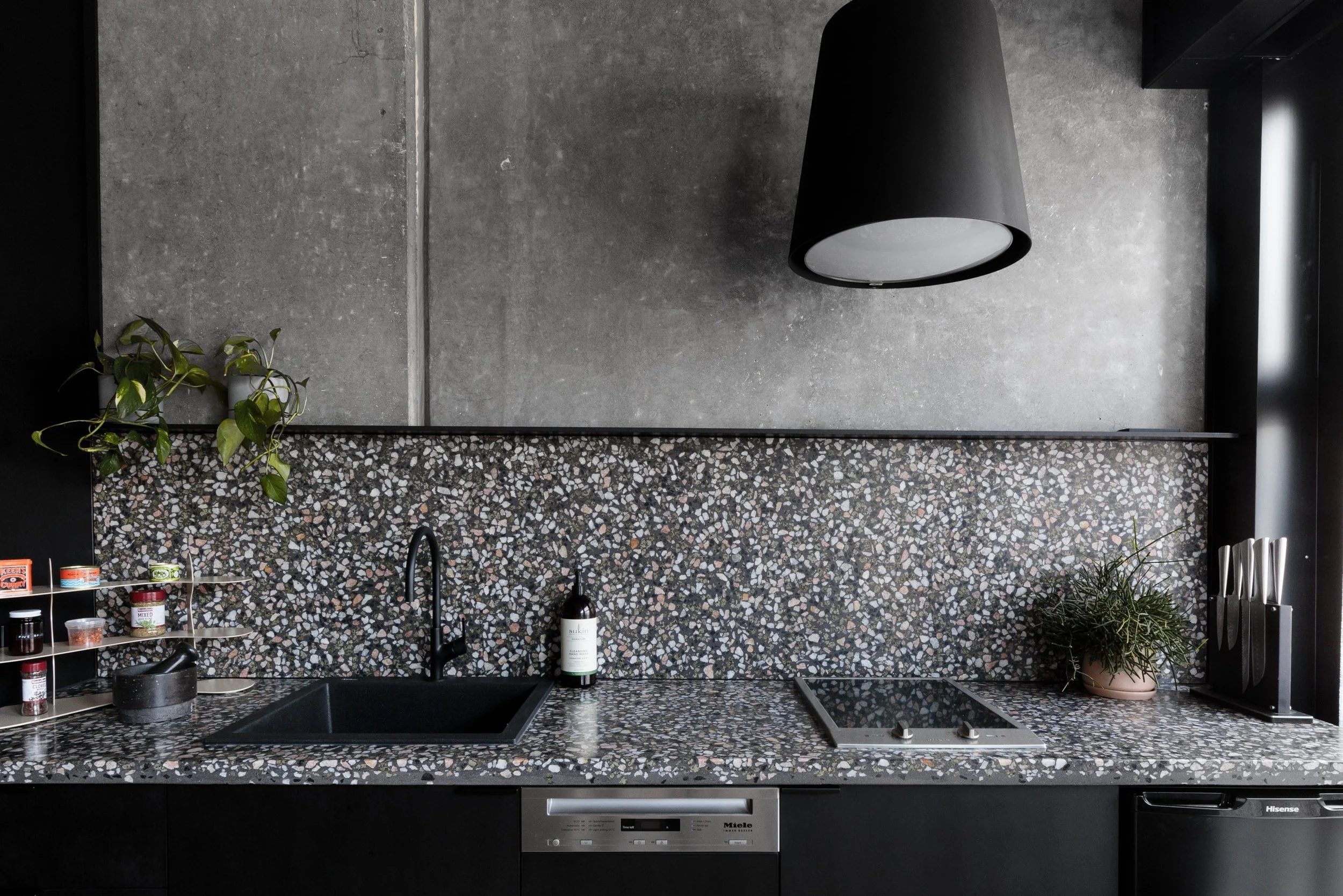 For private homes and apartments, we produce custom terrazzo benchtops, splashbacks, bathrooms, flooring, and furniture. Every surface is tailored to the home’s architecture and material palette, balancing refinement, longevity, and daily use.